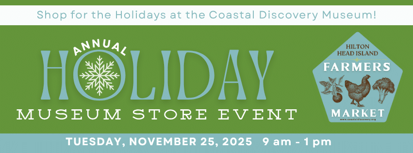 Hilton Head Island, SC — The Coastal Discovery Museum, a Smithsonian Affiliate, invites shoppers to its Holiday Museum Store Sale and Farmers Market on Tuesday, November 25, from 9 am to 1 pm.